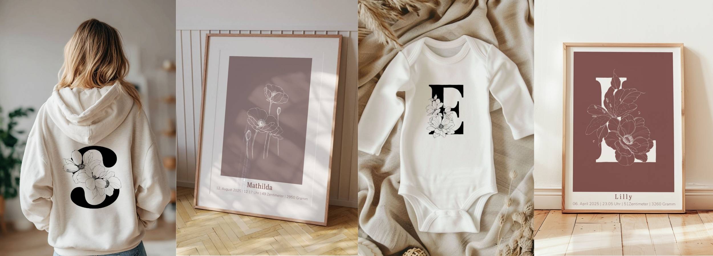 Du kannst dich auf eine ruhige, hochwertige Ästhetik verlassen, die zu modernen Kinderzimmern genauso passt wie zu minimalistischen Wohnungen. Jedes Design ist handgezeichnet, mit Liebe zum Detail und dem Anspruch, dass es sich wie ein echtes Erinnerungsstück anfühlt – nicht wie Massenware.