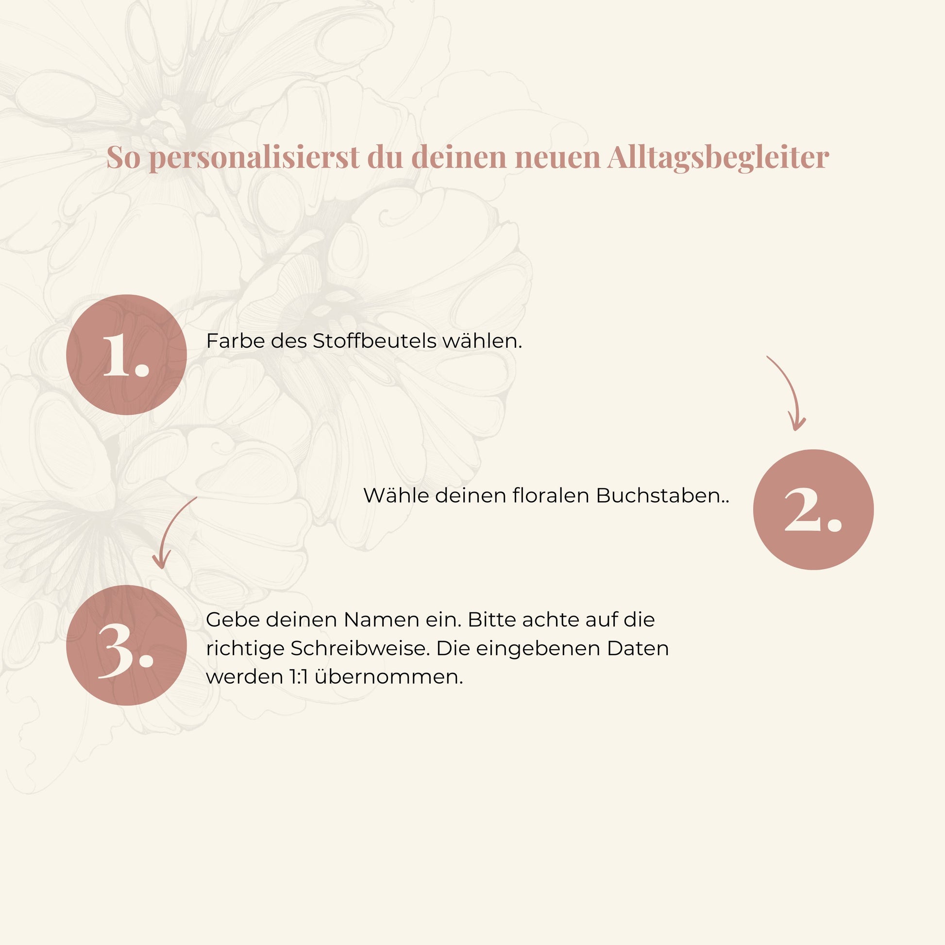 Stoffbeutel mit floralem Buchstaben - personalisierbar
